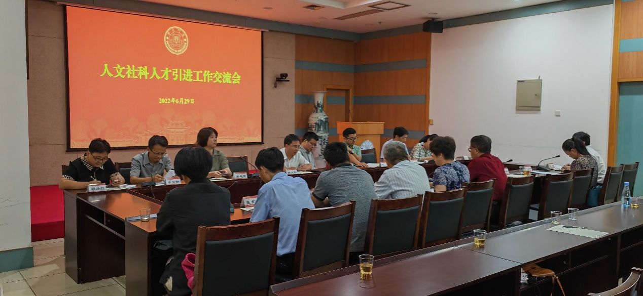 2022年6月29日下午,党委人才办/人事处组织召开人文社科人才引进工作交流会。会议由党委人才办副主任兼人事处副处长刘刚教授主持,各人文社科学院相关负责人及人事秘书参加。